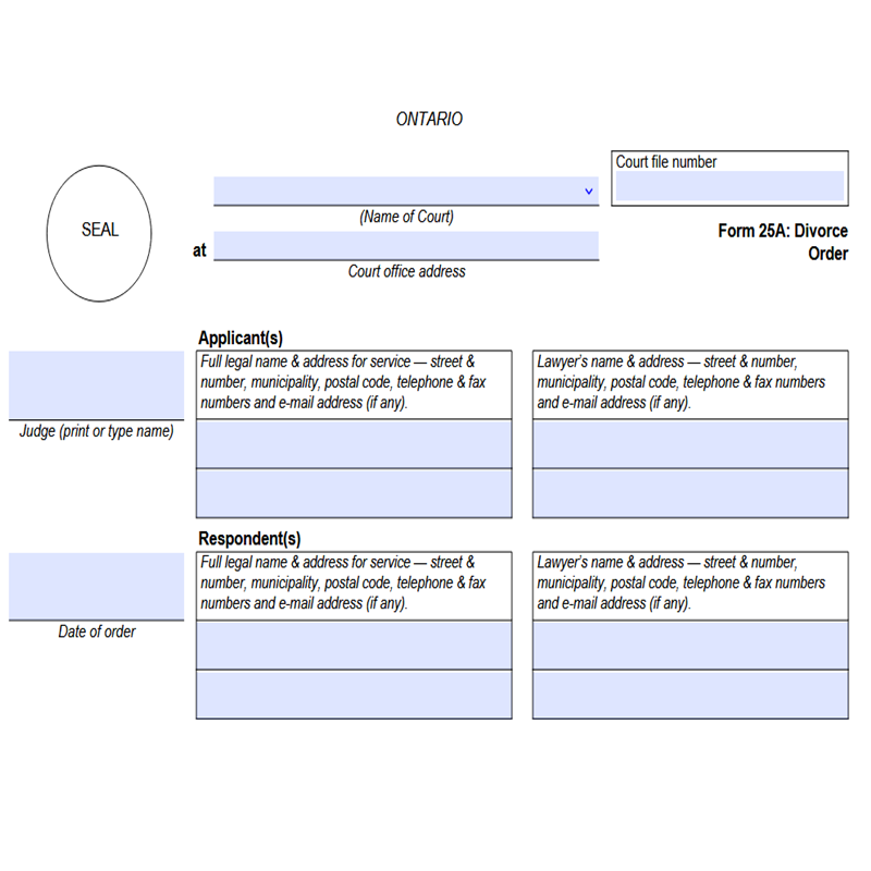Form 25A is the official Divorce Order issued by the Ontario court after a divorce has been approved. Form 25A serves as the court’s final confirmation that a divorce has been granted. Its legal purpose is to: